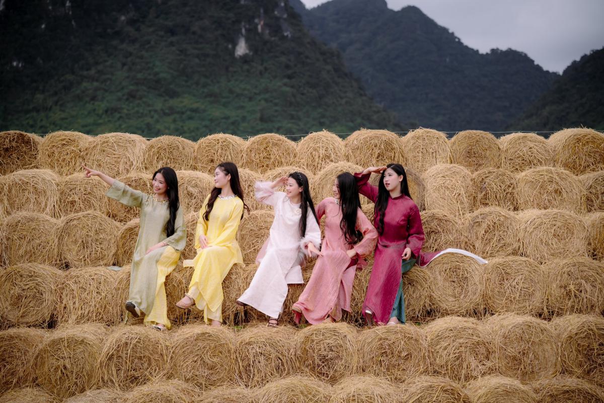 Làng Đưng mang vẻ đẹp bình dị với con đường tre và những cánh đồng rộng mở. Không gian yên bình nơi đây rất phù hợp cho các bộ ảnh áo dài du xuân hoặc phong cách truyền thống.