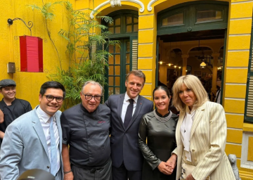 French President Emmanuel Macron had lunch with fried spring rolls, crab vermicelli soup and stir-fried water spinach with garlic at a restaurant on Hang Be Street in Hanoi during his state visit this week.