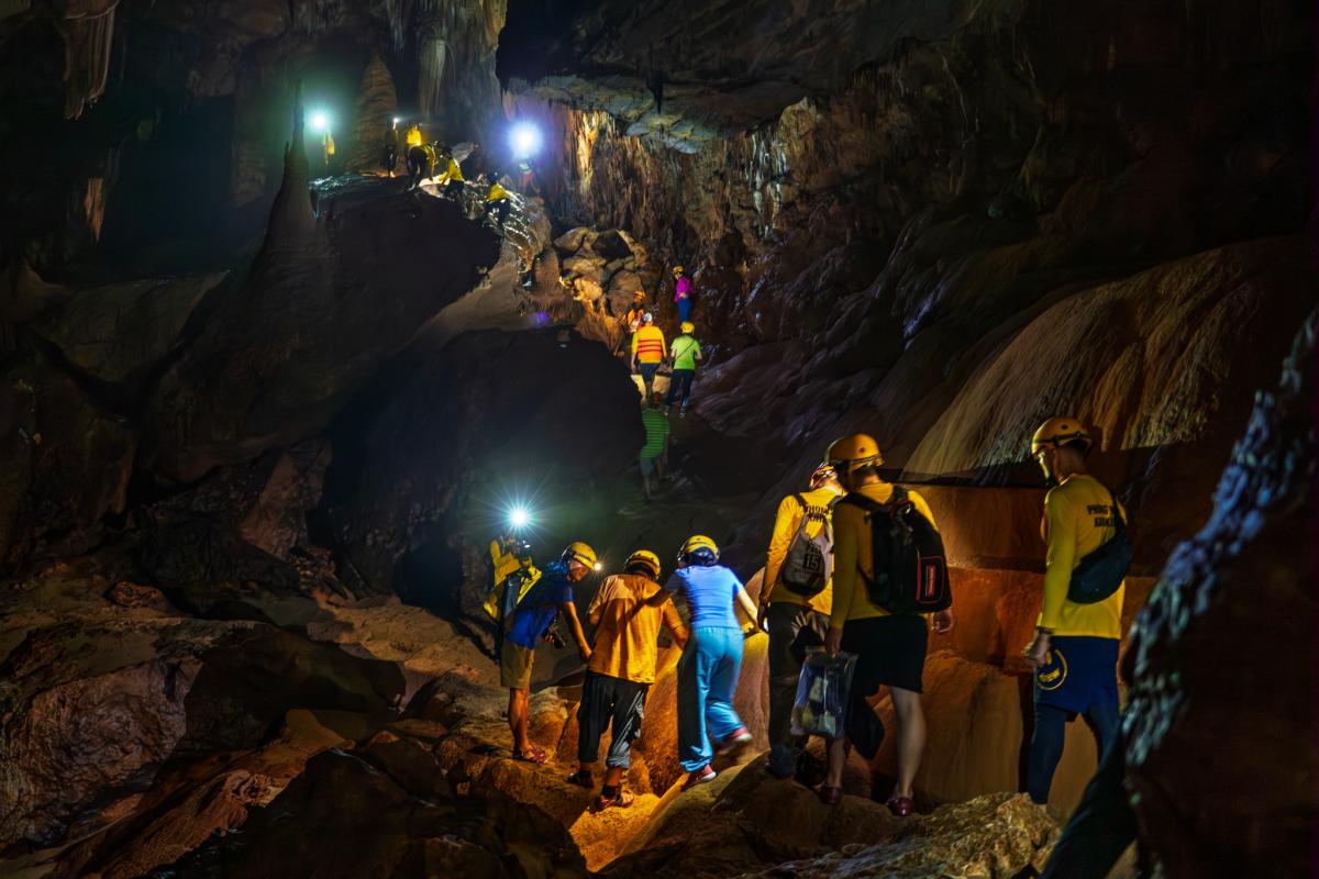Đây không chỉ là một chuyến tham quan, mà là một hành trình phiêu lưu thực thụ: đi bộ xuyên rừng, băng qua những khối đá khổng lồ, lội suối ngầm và chiêm ngưỡng những “cung điện” thạch nhũ mà ít người có cơ hội nhìn thấy.